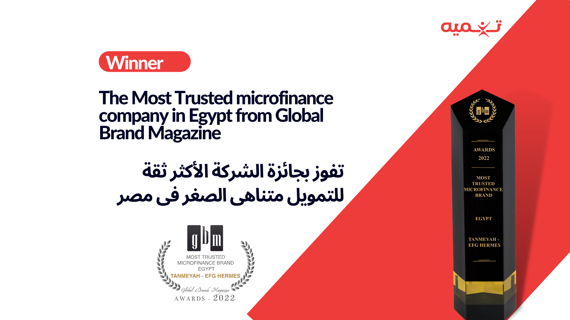 حصلت تنمية على جوائز مجلة Global Brands لتكون "الشركة الأكثر ثقة في مجال التمويل متناهي الصغر في مصر 2022".